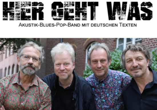 Mit der Akustik-Blues-Pop-Band HIER GEHT WAS tritt er am Samstag, 25. März 2023, bei uns im Kampfkunstzentrum auf. Er verspricht einen spannend musikalischen Abend, denn „auch in meinen Texten geht es um Beweglichkeit und Schnellkraft“. Dabei meint er mehr die kriminelle Energie seiner Figuren, als seine eigene anaerobe Belastbarkeit. „Die nötige Kondition bringen auf jeden Fall die drei anderen Musiker mit“, beteuert er.